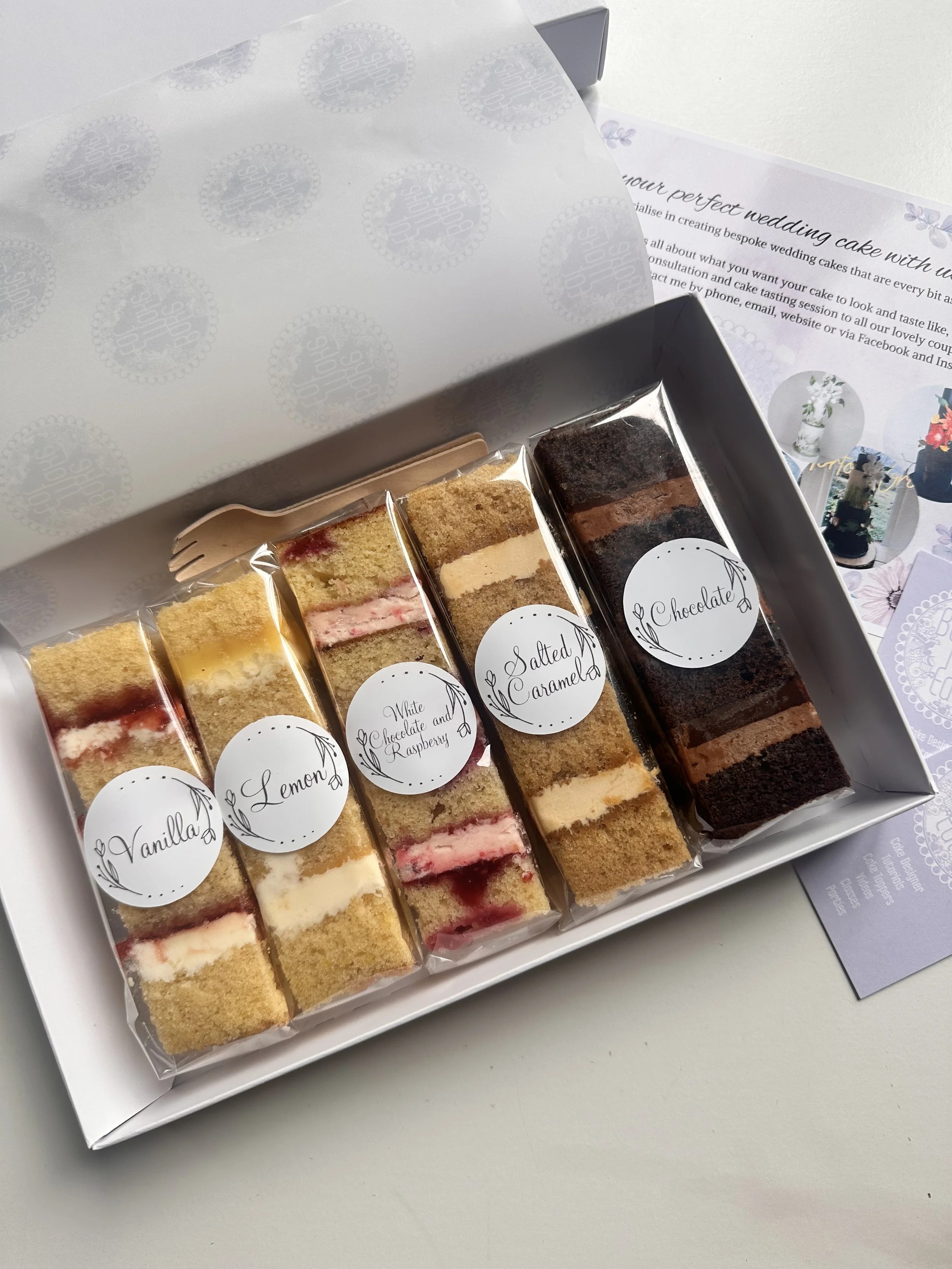 Categories: All Cake taster boxes All | Cake taster boxes | 12 Bridal Cupcakes £50.00 Taster Boxes £20.00